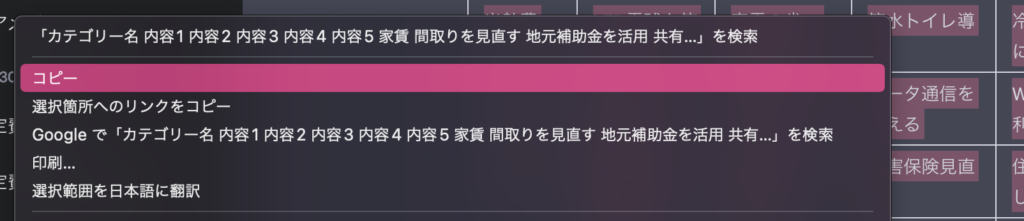 この状態で、ChatGPTで出力されたテーブル形式のデータをコピーします。