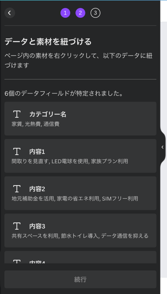この要領で「本文を追加」の文章もデータの接続を行っていきます。