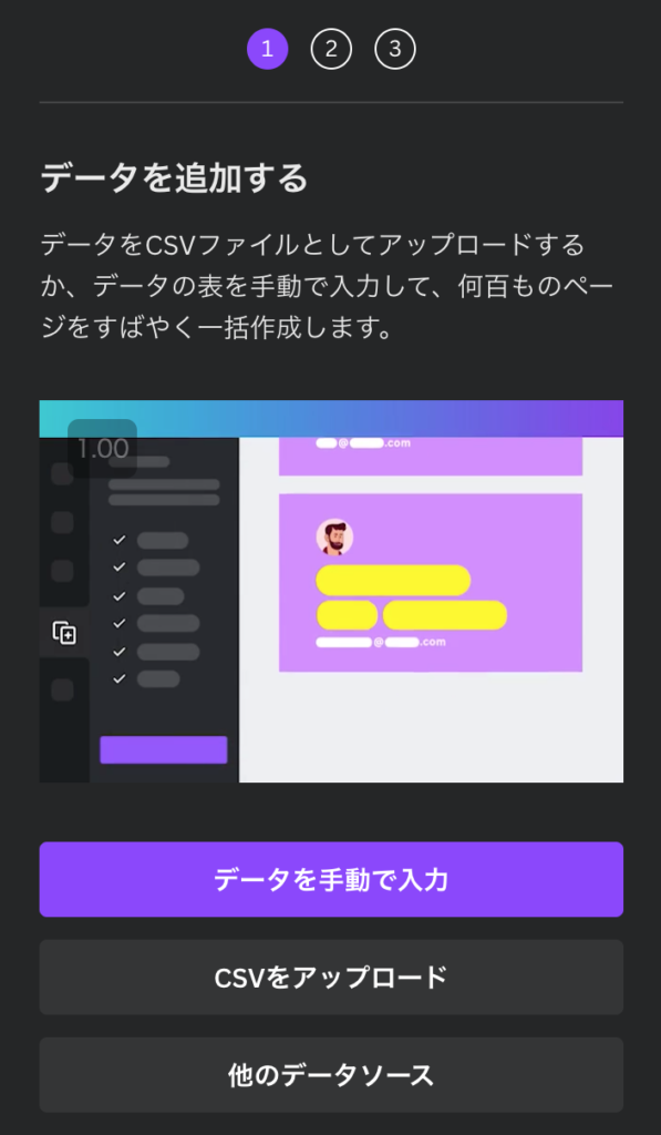 では次にこの情報をもとに、Canvaで一括生成を利用して、複数枚の画像を生成していきましょう。